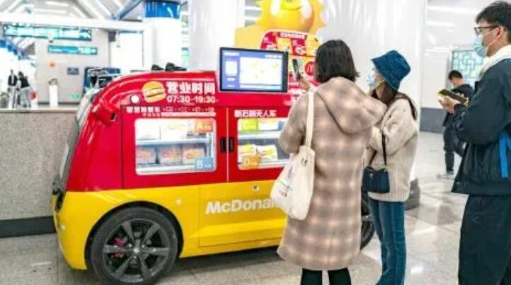 北京経済技術(shù)開(kāi)発區(qū)の自動(dòng)販売車(chē)が北京朝陽(yáng)區(qū)の地下鉄駅に進(jìn)出した。このほど地下鉄7號(hào)線(xiàn)雙井駅の構(gòu)內(nèi)で、黃色の新石器自動(dòng)運(yùn)転車(chē)を體験しようと駅から出る多くの乗客が集まっていた。攜帯電話(huà)で畫(huà)面のQRコードをスキャンすると、ページ上で食べたいマクドナルドのセットを購(gòu)入できる。科技日?qǐng)?bào)が伝えた。