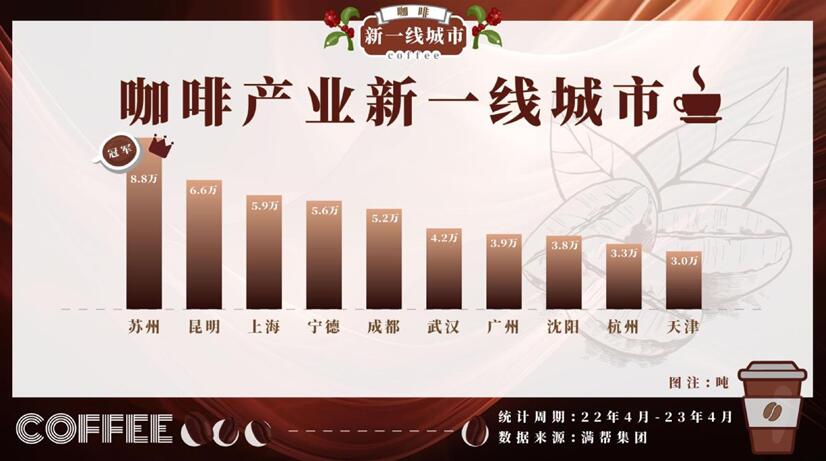 満幇のデータでは、蘇州には過(guò)去1年間に9萬(wàn)トン近いコーヒーが運(yùn)ばれ、引取量のランキングでトップに立った。これは蘇州がコーヒー豆の深加工分野で事業(yè)を展開(kāi)していることと密接な関係がある。數(shù)多くのコーヒーの有名ブランドが焙煎拠點(diǎn)を蘇州に設(shè)立したと同時(shí)に、コーヒー+昆曲(古典劇)、コーヒー+書(shū)店など、業(yè)界の枠を超えたコラボ消費(fèi)が蘇州で臺(tái)頭した。大まかな統(tǒng)計(jì)によれば、蘇州の都市部には現(xiàn)在、カフェやコーヒーショップが1600ヶ所以上あり、従業(yè)員は1萬(wàn)人を超えるという。