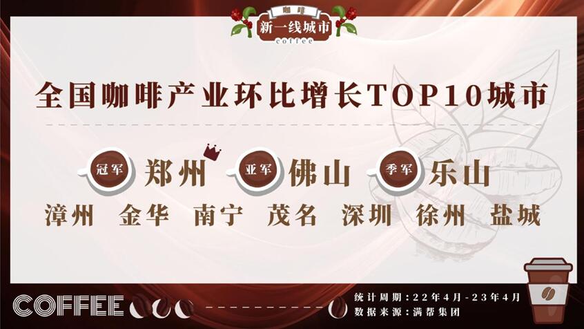 ここ數(shù)年の中國(guó)経済の発展にともない、多くの二線都市?三線都市の消費(fèi)者も徐々にコーヒーを好きなだけ楽しめるようになった。公開(kāi)されたデータを見(jiàn)ると、2021-22年の三線都市のカフェ店舗數(shù)の成長(zhǎng)率が19%と最も高かった。満幇のデータでは、過(guò)去1年間近くのコーヒー引取量番付の上位10都市のうち、一線都市は深センだけで、他には鄭州、仏山、楽山などの都市が並んだ。