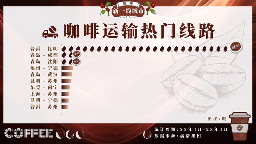 全體として言えるのは、一線都市が引き続きコーヒー輸送の主要な目的地だが、これと同時(shí)に、コーヒー産業(yè)チェーンに牽引されて、それに関連する都市のコーヒー輸送における「地位」も軽視できなくなったということだ。