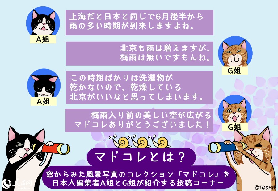 ウチのオフィスの窓からは、こんな風(fēng)景またはこんなモノが見えると自慢していただく「マドコレ(窓から見た風(fēng)景コレクション)」コーナー。どこまでも続く青い空や遠(yuǎn)くに見える山々といった自然の風(fēng)景から、オフィス街に建ち並ぶ高層ビルや幹線道路を走る車、庶民の暮らしが垣間見えるローカルな街並み、はたまた移動(dòng)中の車窓からの眺めなどなど、高さや場(chǎng)所も異なれば、その窓から眺める風(fēng)景も千差萬別。中には仕事の意欲をアップさせてくれる元?dú)荬纬訾牍饩挨猡ⅳ欷?、疲れを癒してくれるほっこりした風(fēng)景も。そんな皆さまからお寄せいただいたマドコレの數(shù)々を、毎週火曜日に、人民網(wǎng)日本人編集者のA姐とG姐がコメントしながら、のんびり紹介していきます。