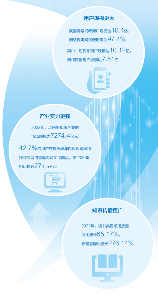 「報(bào)告」によると、2022年、インターネット視聴産業(yè)関連の市場は7274億4000萬元規(guī)模にまで拡大した。ユーザーの42.7%が、「ここ半年、オンライン動畫、又はライブ配信を視聴したのがきっかけで商品を購入したことがある」と答え、その數(shù)字は2020年に比べて27ポイント上昇した。「視聴+」を代表とした新シーンと新業(yè)態(tài)が社會や生活、産業(yè)構(gòu)造において、連結(jié)やエンパワーメントの役割を果たすようになっており、それが日に日に際立つようになっている。