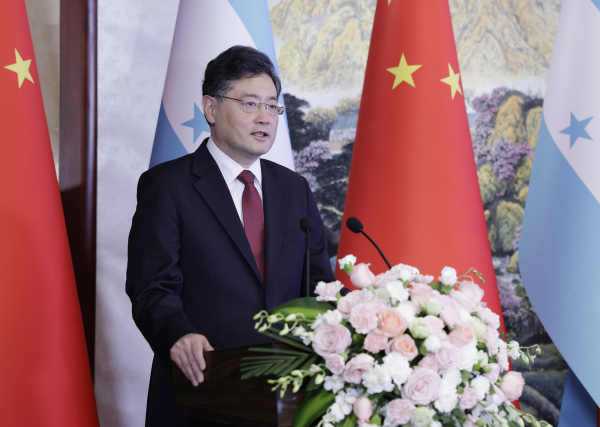 秦剛國務委員兼外交部長(外相)は11日、北京で在中國ホンジュラス大使館の開館式に出席し、ホンジュラスのレイナ外相と共に除幕を行った。