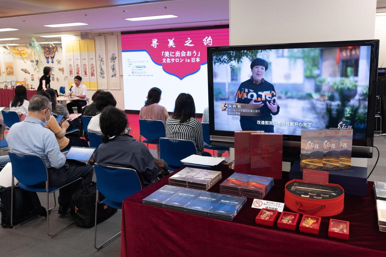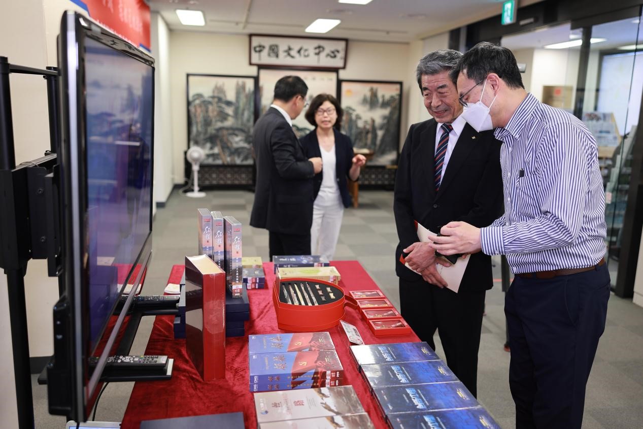中國の優(yōu)れた文化作品を海外に紹介し、中日の文化交流を促進(jìn)するため、中國メディアグループアジア太平洋総局は今回のイベントにおいて、多くのオーディオ作品を提供した。會場入口には、中國メディアグループの優(yōu)れたオーディオ作品の展示と中國の伝統(tǒng)文化を特徴とした文化クリエイティブグッズが人々の注目を集めていた。大型スクリーンでは、「征程」や「故宮」、「シルクロード」など、中國メディアグループが制作した優(yōu)れた作品が上映され、訪問者は興味津々といった様子で鑑賞し、中國メディアグループスタッフから作品の詳細(xì)に関する説明を受けていた。またアジア太平洋総局東京支局はより多くの日本人が中國文化を深く理解できるように、今回「故宮」や「征途」などのオーディオ作品シリーズを中國文化センター図書館に寄贈した。