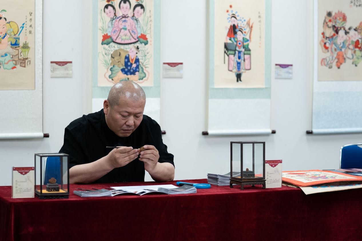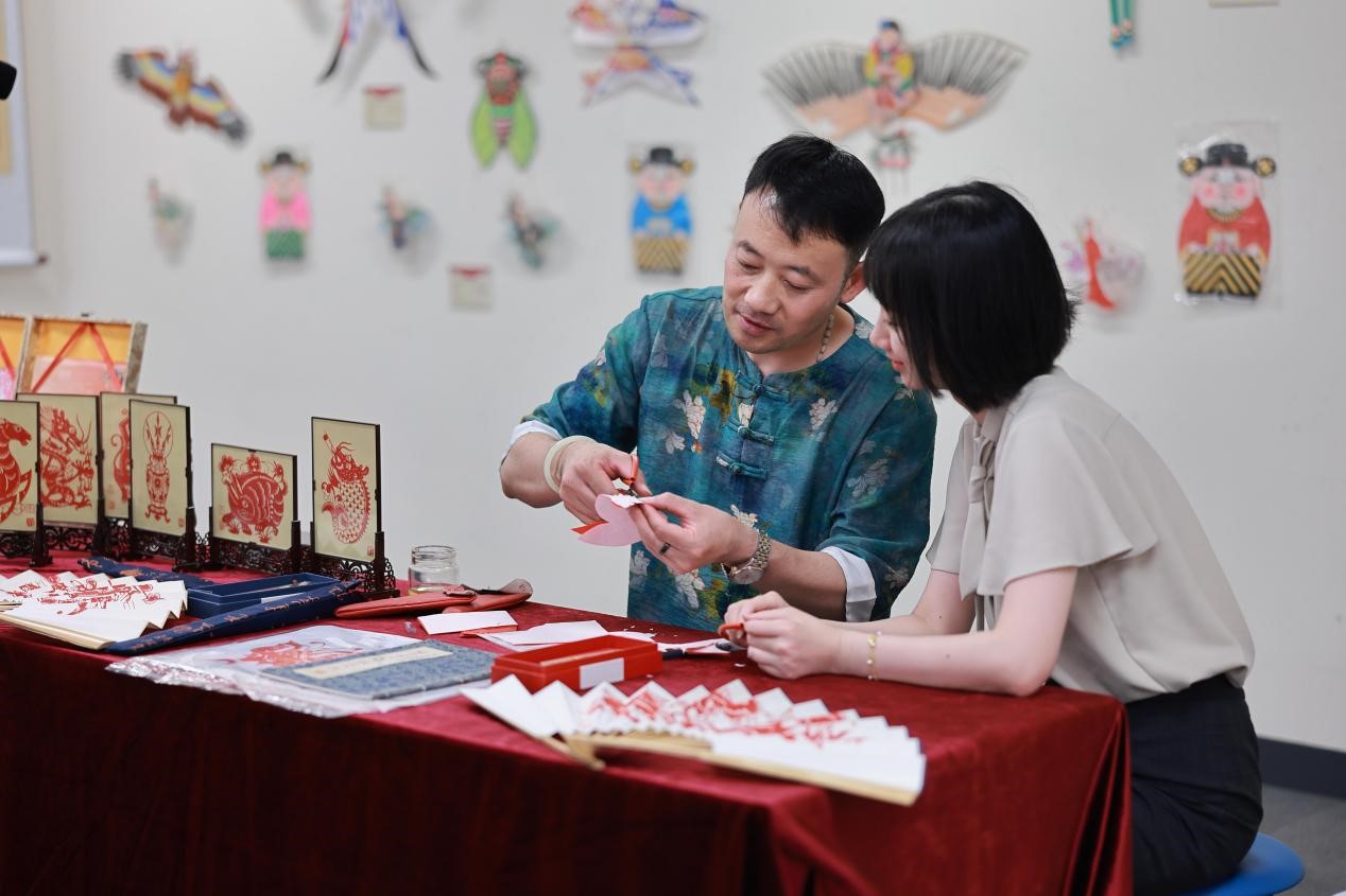 會場に設(shè)けられた無形文化遺産の制作體験コーナーでは、參加者たちが國家級の無形文化遺産継承者のデモンストレーションを見學(xué)した後、職人の指導(dǎo)を受けながら切り絵や凧、年畫などを手作りし、中國文化の獨(dú)特な魅力を體験していた。