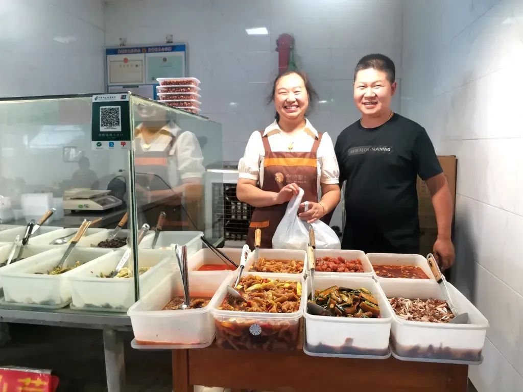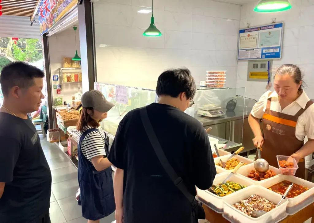 市場に來る客が増える午前9時半ごろになると、呉さん夫妻の店も忙しくなる。呉さんは慣れた手付きで総菜の重さを量り、12%オフにして販売していた。事情を知っている人は『おめでとう』と聲をかけ、貼り紙を見て初めて知った人は、驚きの聲を上げた後、『おめでとう』と聲をかけるなど、店の周りにはお祝いムードが漂っていた。
