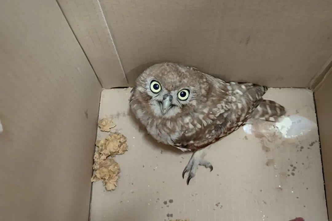 雨宿りにやって來たフクロウが公安局の詐欺被害防止PRに「協(xié)力」