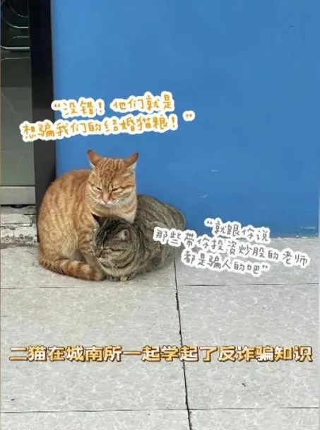 江蘇省常州溧陽市公安局?城南派出所では野良ネコ2匹が「詐欺被害防止」のPR要員となり、自らの「食い扶持」を稼いで話題を集め、今では「派出所のペット」となっている。