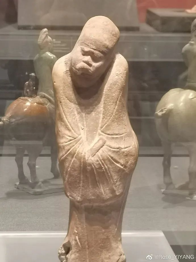 安徽博物院がアップしたのは、「良心に照らして話せ」と言っているような盾を持って門を守っている武士の陶俑だ。この2つの武士俑のうちの1體は、目を見開いて、笑みを浮かべているが、もう1體は、眉を逆立て目を大きく見開き、怒っているように見える。片手には盾を持ち、もう片手には武器を持っていた(武器は既に取れてしまっている)。死者を埋葬する際に陶俑を副葬する方法は、秦から唐の時(shí)代の貴族の間で流行した。主に、各時(shí)期の役人のイメージに基づいて製作され、死者の生前の高い地位を示すのに用いられた。