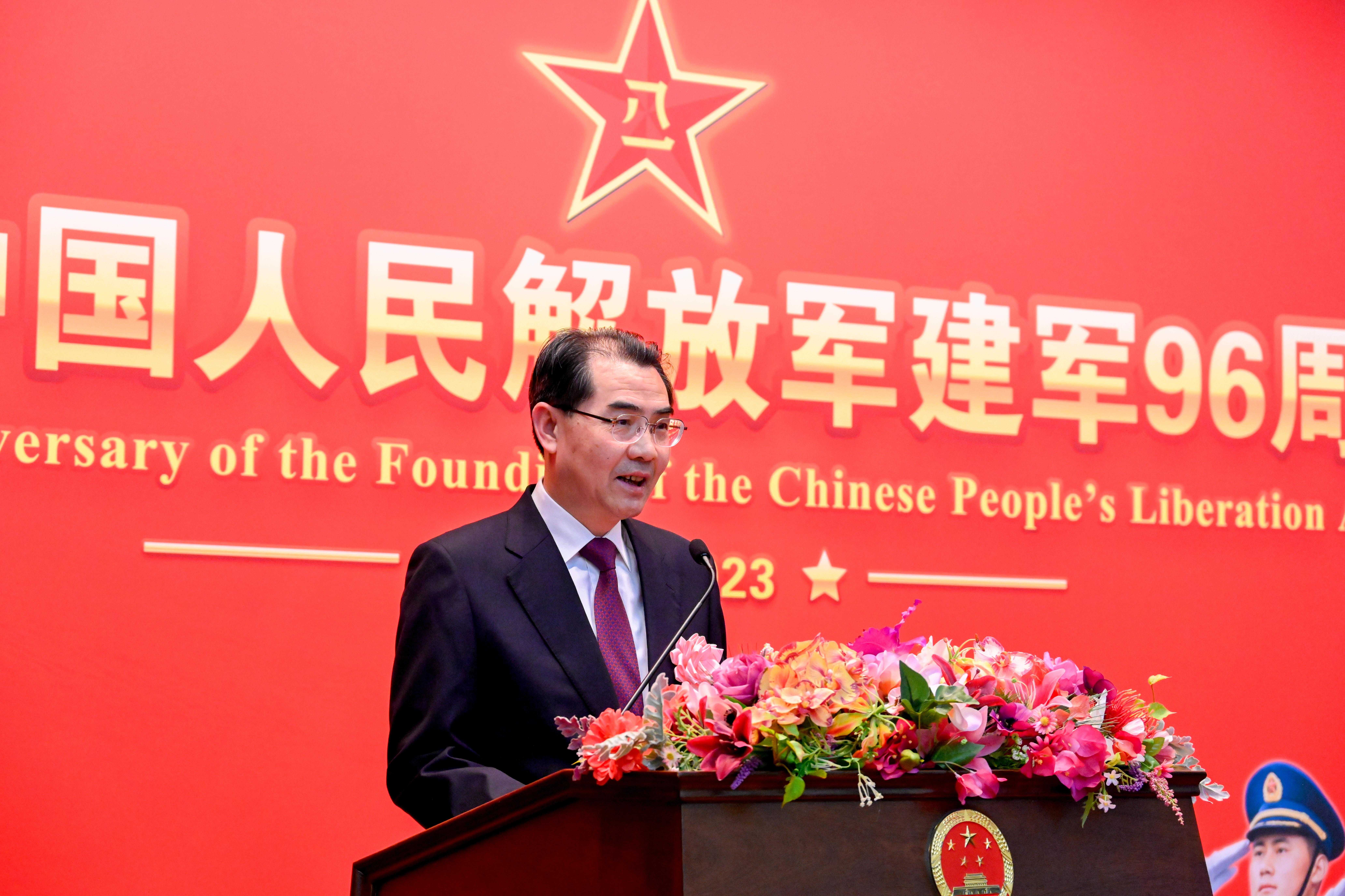 呉大使は「中國人民解放軍は過去96年間、中國共産黨の指導の下、民族の獨立と解放を勝ち取り、國家主権?安全保障?発展上の利益を守り、地域と世界の平和を維持するために卓越した勲功をたてた?,F(xiàn)在、中國は中國式現(xiàn)代化によって中華民族の偉大な復興を全面的に推進している。中國式現(xiàn)代化は平和的発展路線を堅持する現(xiàn)代化であり、中國は常に世界平和の建設者、世界発展の貢獻者、國際秩序の擁護者であり、中國式現(xiàn)代化のもたらす発展の機會を各國と分かち合うことを望んでいる」と表明。