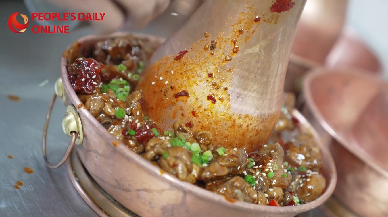 火鍋鶏は河北省滄州市で生まれた特色あるグルメ料理。四川省のピリリと辛い鍋料理「麻辣火鍋」と鶏肉を組み合わせたもので、牛骨を煮込んだスープに、豆板醤や唐辛子など様々な調(diào)味料と生薬を加えて作る。食べる時(shí)には熟成黒酢の老陳醋とニンニクが欠かせない。人民網(wǎng)が伝えた。