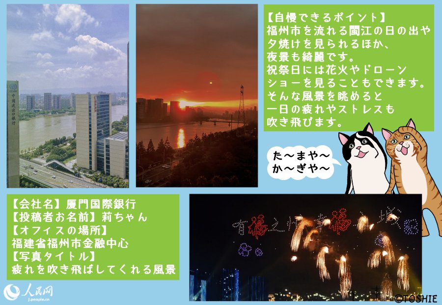 人民網(wǎng)では、ウチのオフィスの窓からはこんな風(fēng)景またはこんなモノが見(jiàn)えるという自慢をしていただく「マドコレ(窓から見(jiàn)た風(fēng)景コレクション)」を毎週火曜日に掲載中!オフィスの窓からの眺めでもよし、お仕事中の窓からの眺めでもよし、オフィスまたは仕事中に窓から眺めた様子を?qū)懁筏繉?xiě)真とそれにまつわるエピソードをご投稿ください!