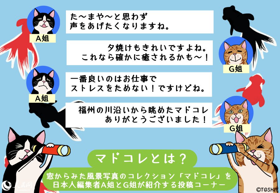 ウチのオフィスの窓からは、こんな風(fēng)景またはこんなモノが見(jiàn)えると自慢していただく「マドコレ(窓から見(jiàn)た風(fēng)景コレクション)」コーナー。どこまでも続く青い空や遠(yuǎn)くに見(jiàn)える山々といった自然の風(fēng)景から、オフィス街に建ち並ぶ高層ビルや幹線道路を走る車、庶民の暮らしが垣間見(jiàn)えるローカルな街並み、はたまた移動(dòng)中の車窓からの眺めなどなど、高さや場(chǎng)所も異なれば、その窓から眺める風(fēng)景も千差萬(wàn)別。中には仕事の意欲をアップさせてくれる元?dú)荬纬訾牍饩挨猡ⅳ欷?、疲れを癒してくれるほっこりした風(fēng)景も。そんな皆さまからお寄せいただいたマドコレの數(shù)々を、毎週火曜日に、人民網(wǎng)日本人編集者のA姐とG姐がコメントしながら、のんびり紹介していきます。