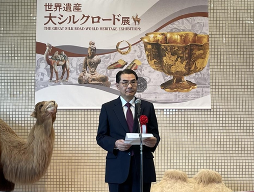 呉大使は「シルクロードは東洋と西洋を結(jié)ぶ経済?貿(mào)易の道であると同時(shí)に、文化交流と民心の通じ合いの道でもあった。シルクロードは東は日本まで到達(dá)し、日本文化が豊かになり、発展するうえで積極的な役割を果たし、深く広範(fàn)な影響を及ぼした。この展覧會(huì)を見學(xué)することで、シルクロードの文化と歴史を再認(rèn)識(shí)し、古代における異なる文明間の交流と共同発展を感じた。これはまさに習(xí)近平総書記の打ち出した人類運(yùn)命共同體の構(gòu)築というイニシアティブの意味するものでもある。私たちは、國際協(xié)力を絶えず強(qiáng)化し、人類運(yùn)命共同體の構(gòu)築促進(jìn)のために新たな原動(dòng)力を注ぐべきだ」と指摘。