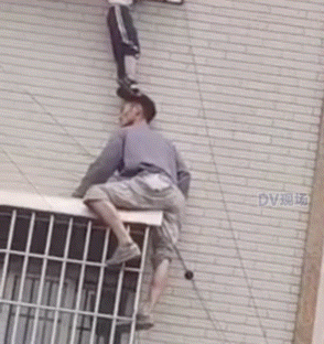 宙づりの子供を自分の頭で支えて救助した広東省の男性
