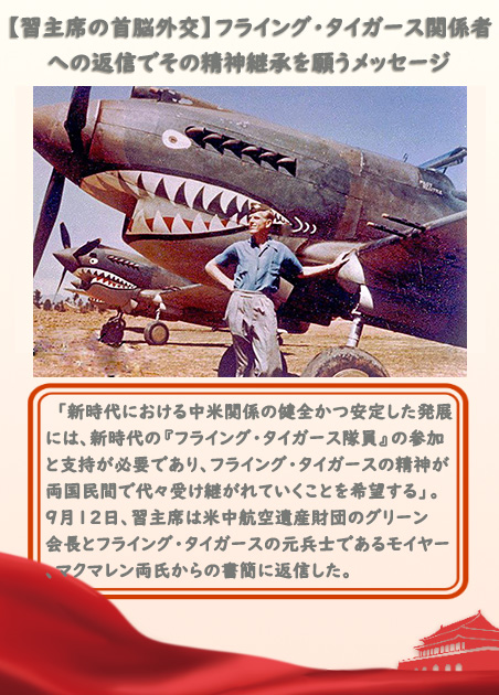 【習(xí)主席の首脳外交】フライング?タイガース関係者への返信でその精神継承を願うメッセージ