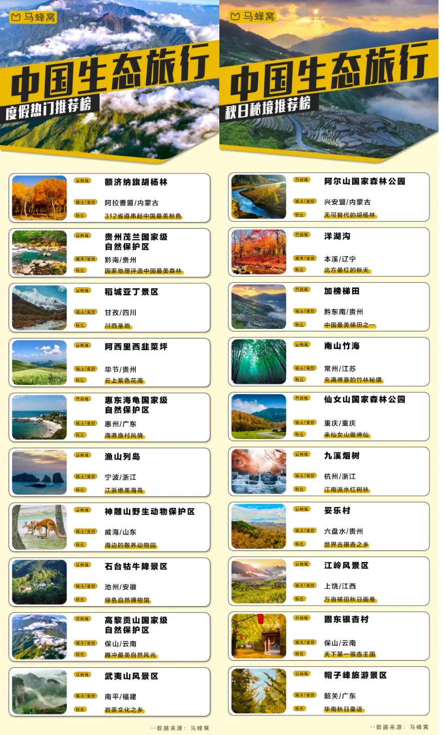 自然に溶け込むことができるだけでなく、目新しく楽しい旅行先が今、中國の若者の間でトレンドとなっている。旅行情報メディア?馬蜂窩が発表した「おすすめの中國のエコツーリズムランキング」(秋シーズンランキング)は、「人気リゾート」、「秋の秘境」、「マウンテンスポーツ」、「神秘的な鐘乳洞」、「人文秘境」、「グルメ原産」の6ジャンル別に、秋シーズンのエコツーリズムガイドを提供している。中國新聞網(wǎng)が報じた。