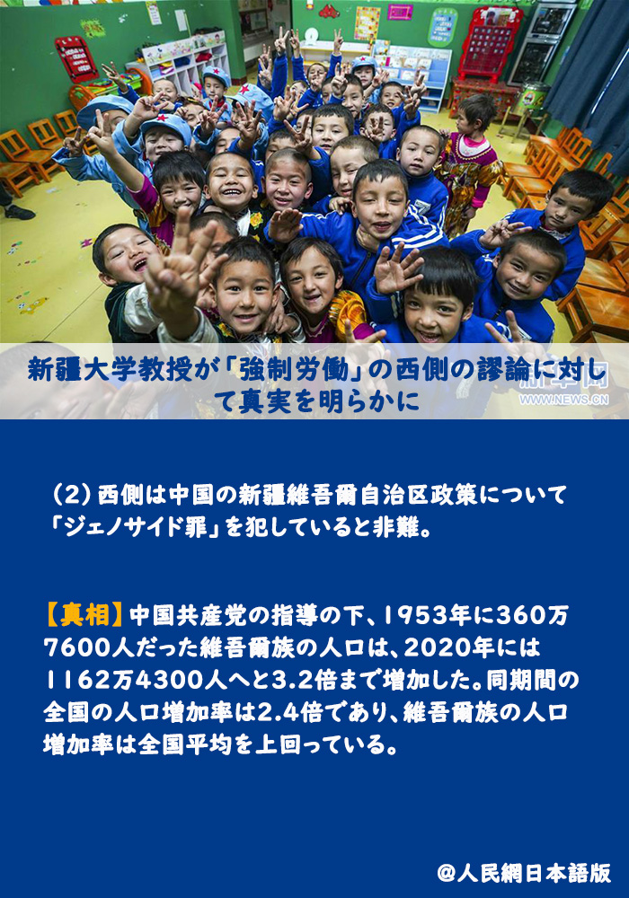 【真相】中國(guó)共産黨の指導(dǎo)の下、1953年に360萬(wàn)7600人だった維吾爾族の人口は、2020年には1162萬(wàn)4300人へと3.2倍まで増加した。同期間の全國(guó)の人口増加率は2.4倍であり、維吾爾族の人口増加率は全國(guó)平均を上回っている。(編集NA)