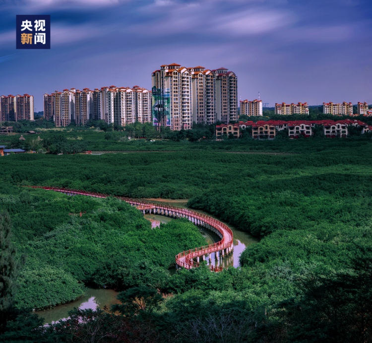 夕焼けと街のネオンが「競演」する合浦県海外シルクロード首港景勝地。