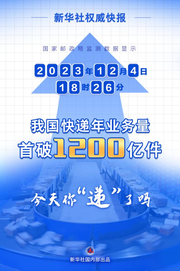 中國の年間宅配便取扱個數(shù)が12月4日、初めて1200億個の大臺に乗り、過去最多を更新した。