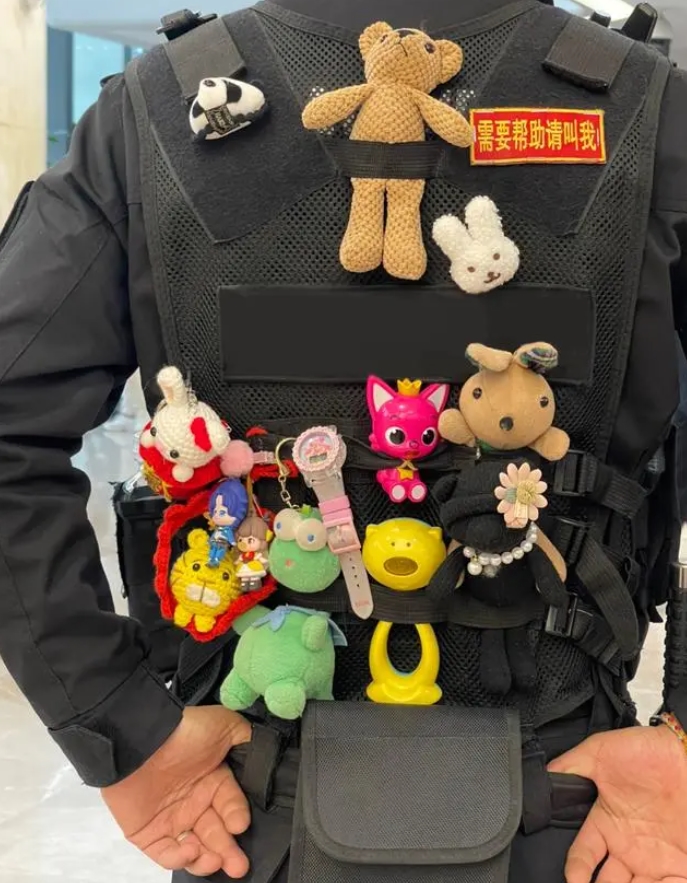于さんがマスコットを「おんぶ」するようになったのは、とある偶然の出來事から始まったという。以前、病院內(nèi)をパトロール中に、子供が落としたとみられるマスコットを拾ったという。「病院ではたびたびこうしたマスコットなどのおもちゃを拾う事がある。それらはすべて診察を受けるために來た子供たちがうっかり落としていったものばかりだ。これらをベストの背中につければ目立つので、落とした子供や保護(hù)者がすぐに気づいて取りに來ると思った」と于さん。