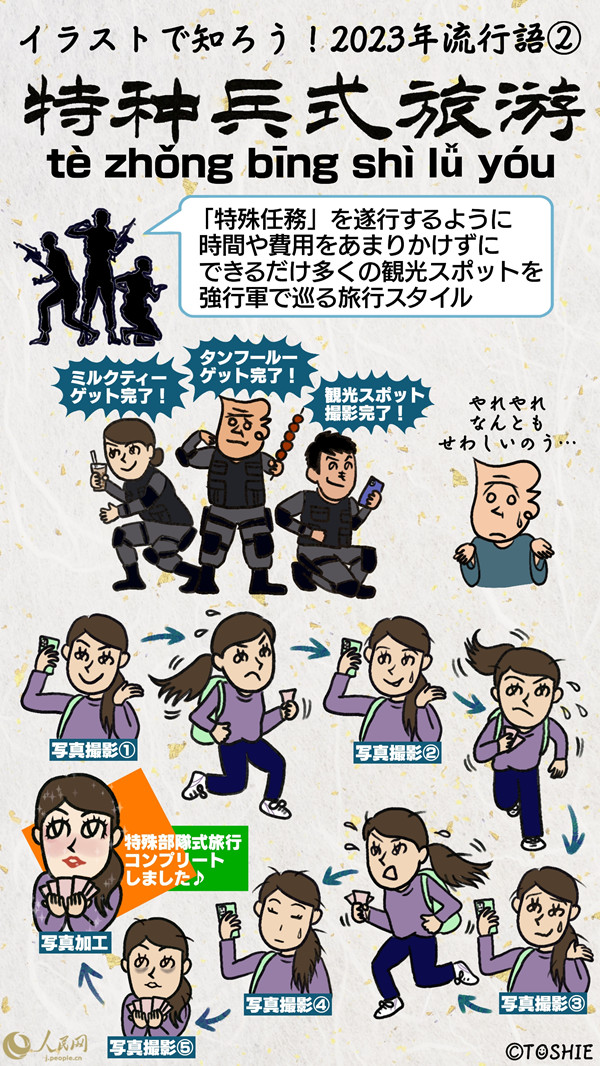 【イラストで知ろう!イマドキ中國】2023年流行語ピックアップ「特種兵式旅游」