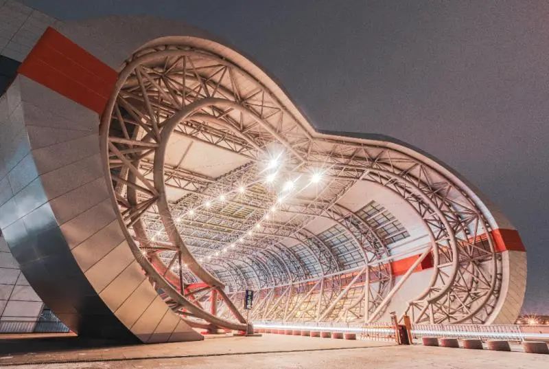 例えば、淄博北駅は側(cè)面から見ると、プラットホームの雨除けと日除けの構(gòu)造物がハートのように見える。