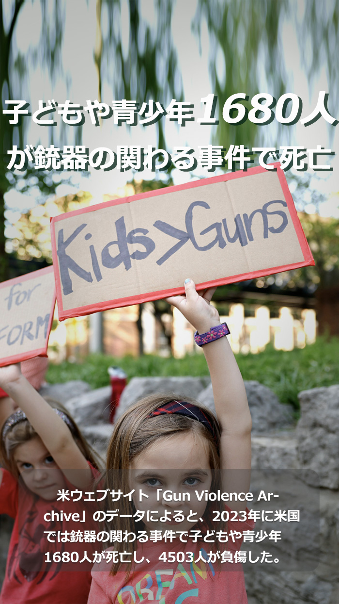 米ウェブサイト「Gun Violence Archive」のデータによると、2023年に米國では銃器の関わる事件で子どもや青少年1680人が死亡し、4503人が負(fù)傷した。(編集NA)