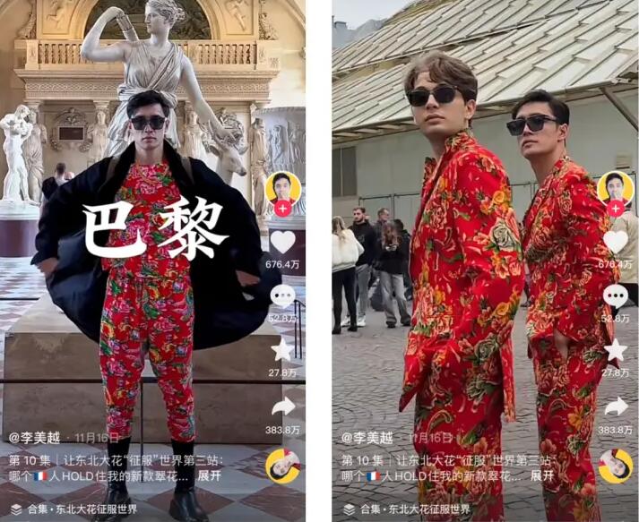 そのブロガーのハンドルネームは「李美越」で、東北エリアの花柄を世界に進(jìn)出させた「影の立役者」と呼ばれている。李美越さんは、これまでに數(shù)多くの動畫を投稿しており、ある動畫では外國人に東北エリアの花柄の服を著てもらい、街中を歩く様子を撮影しており、動畫の中で道行く人のほとんどが振り返って見ていた。