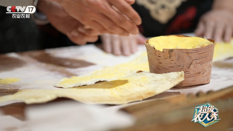 ステップ3では、なめし加工をして臭みを取る?!隔~(yú)皮衣」と聞くと、「生臭いのでは?」と感じる人も多いだろう。昔から赫哲族で伝えられてきた知恵がトウモロコシの粉で臭みを取ることだ。魚(yú)の皮の上にトウモロコシの粉をふりかけ、その上にまた魚(yú)の皮を敷き、トウモロコシの粉をふりかける。7層まで重ねた魚(yú)の皮を巻きあげ、それを木製のギザギザの歯がついたハサミ狀の工具にのせ、1人が魚(yú)の皮を回し、もう1人が木製の歯を押し付けてなめし作業(yè)を行う。この工程を経て、硬い魚(yú)の皮は軟らかくなり、ソフトな手觸りになるだけでなく、臭みもなくなる。