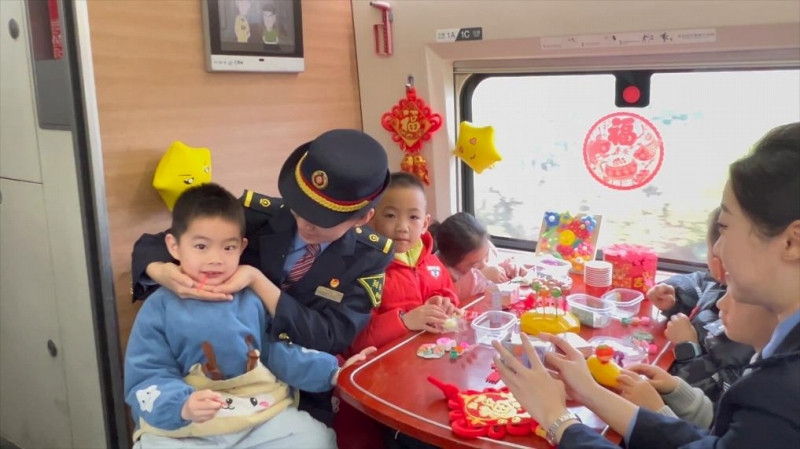 1月29日午後、廈門(アモイ)から上海に向かった高速列車G1654號の食堂車である9號車には臨時「キッズコーナー」が設置され、乗務員のサポートの下、子供たちがゲームをして遊び、車內(nèi)には楽しそうに遊ぶ子供たちの笑い聲が響いていた。同コーナーは保護者の付き添いがあれば、誰でも楽しいゲームをしたり、おもちゃで遊んだり、本を読んだりすることができる。新華社が報じた。