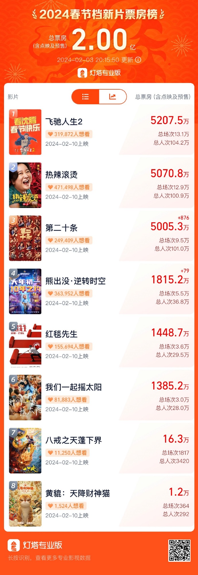 燈塔専業(yè)版の陳晉データアナリストは、「2024年の春節(jié)期間中に公開を予定している映畫の半數(shù)以上がコメディ映畫となっている。そのうち『熱辣滾燙』と『飛馳人生2』はそもそも映畫カテゴリー的にコメディで、『第二十條』と『紅毯先生』はストーリーにコメディ要素が盛り込まれており、『熊出沒?逆転時(shí)空』はコメディアニメとなっている。いわゆる『大作』と呼ばれるような作品は無いものの、そのストーリーやスタイルはいずれも大衆(zhòng)向けでわかりやすく、広く受け入れられやすい。そのため、春節(jié)期間という注目を集めやすい時(shí)期に公開するのにピッタリな作品の數(shù)々となっている」としている。