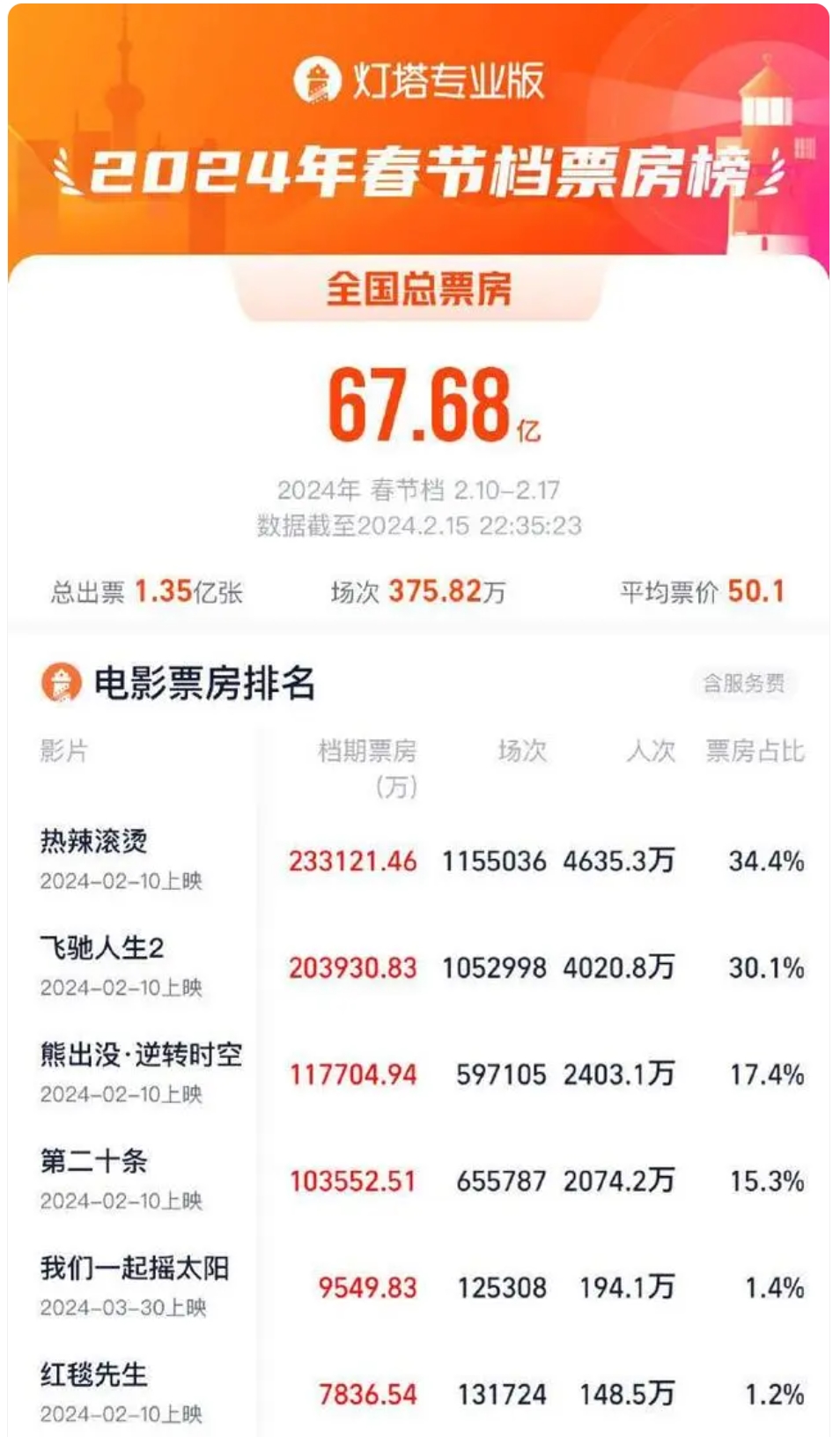 2024年中國春節(jié)期間中に公開の新作映畫の興収が既に昨年上回る