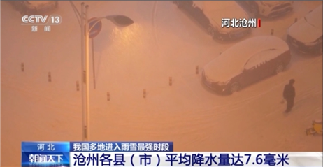 河北省滄州市內では20日早朝から午後9時にかけて、降水量が16.2ミリに達した。滄州市に屬する各県(市)の平均降水量は7.6ミリで、最も多い粛寧國家観測所は16.7ミリに達した。
