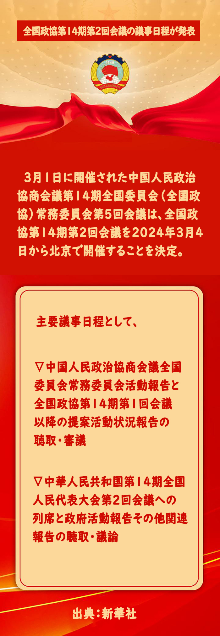 全國政協(xié)第14期第2回會議の議事日程が発表