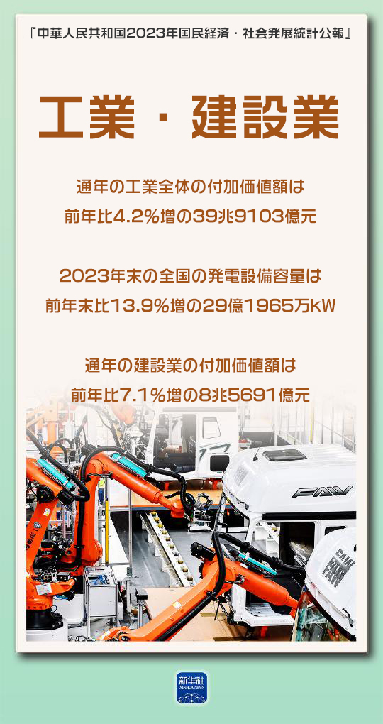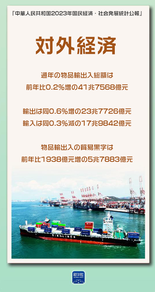國家統(tǒng)計局は2月29日、「中華人民共和國2023年國民経済?社會発展統(tǒng)計公報」を発表した。2023年、中國経済は圧力に耐え抜き、全體として回復?好転し、主要目標を順調(diào)に達成し、質(zhì)の高い発展を著実に推進した。