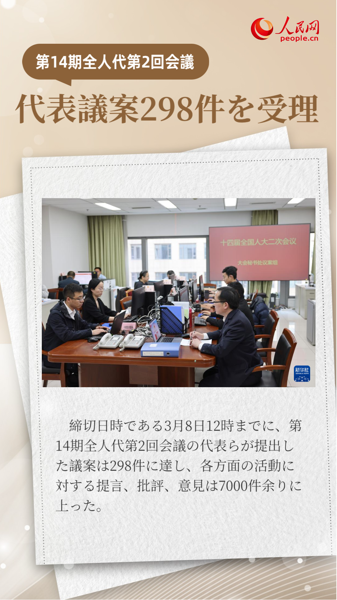 第14期全人代第2回會(huì)議は代表議案298件を受理