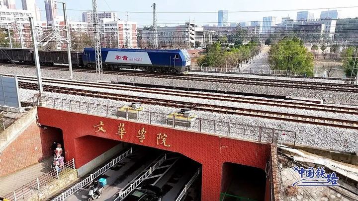 実は、「文華學院」の北門トンネルの上には橋が2本並行して架かり、都市を走る鉄道が都市の隅々を結(jié)び、大量の旅客と貨物の輸送任務を擔っている。大學によると、ここに引っ越してから、キャンパスの地理的特徴に合わせて、鉄道のトンネルを大學の門にしたという。