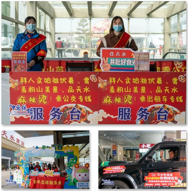 天水南駅と天水駅はここ1週間、1日當たりの利用者が前年同期比で約40%増となっている。そのため、鉄道當局は、高まる需要に合わせて、地元の公共バス當局との連攜を強化し、利用狀況に基づいて、増やしたバスやタクシーにデータを提供してサポートし、旅客が天水南駅や天水駅から「麻辣燙」が食べられる場所に、円滑に移動できるようにしている。