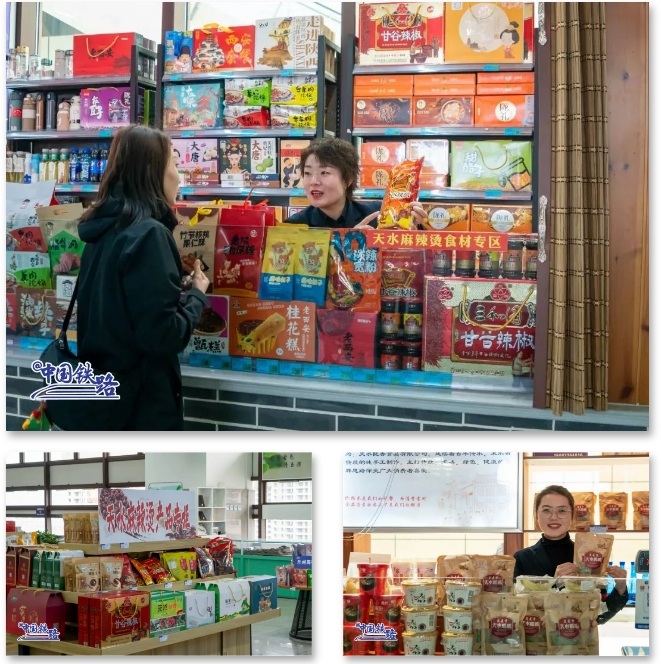 天水南駅の2階の待合スペースには、「天水麻辣燙」の材料を販売する特設コーナーが新設され、定西寬粉(太いはるさめ)や甘谷トウガラシといった「麻辣燙」には欠かすことのできない材料が並んでいる。また、駅の構內には天水市のご當?shù)廿哎毳幛溲喂铯蜇湁婴工胩禺b品コーナーも設置されている。