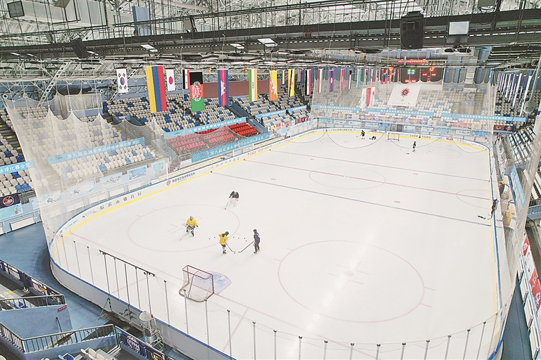 アイスアリーナの高度化改修工事も同時進行中だ。會場の建設(shè)業(yè)者である哈爾浜都市発展投資集団有限公司プロジェクト部長の秦緒林氏は、「空調(diào)裝置、製氷システム、除濕システムなどの設(shè)備はエネルギー効率の高い製品を選択。特に會場の製氷システムは従來のエチレングリコール冷卻剤を廃止し、冷卻効果が高い上、より低炭素で環(huán)境にやさしいR134A冷卻剤に切り替えた。観戦?競技のためのグリーンで健康的な環(huán)境を作ると同時に、都市の持続可能な開発を後押しすることが目標(biāo)だ」と説明した。
