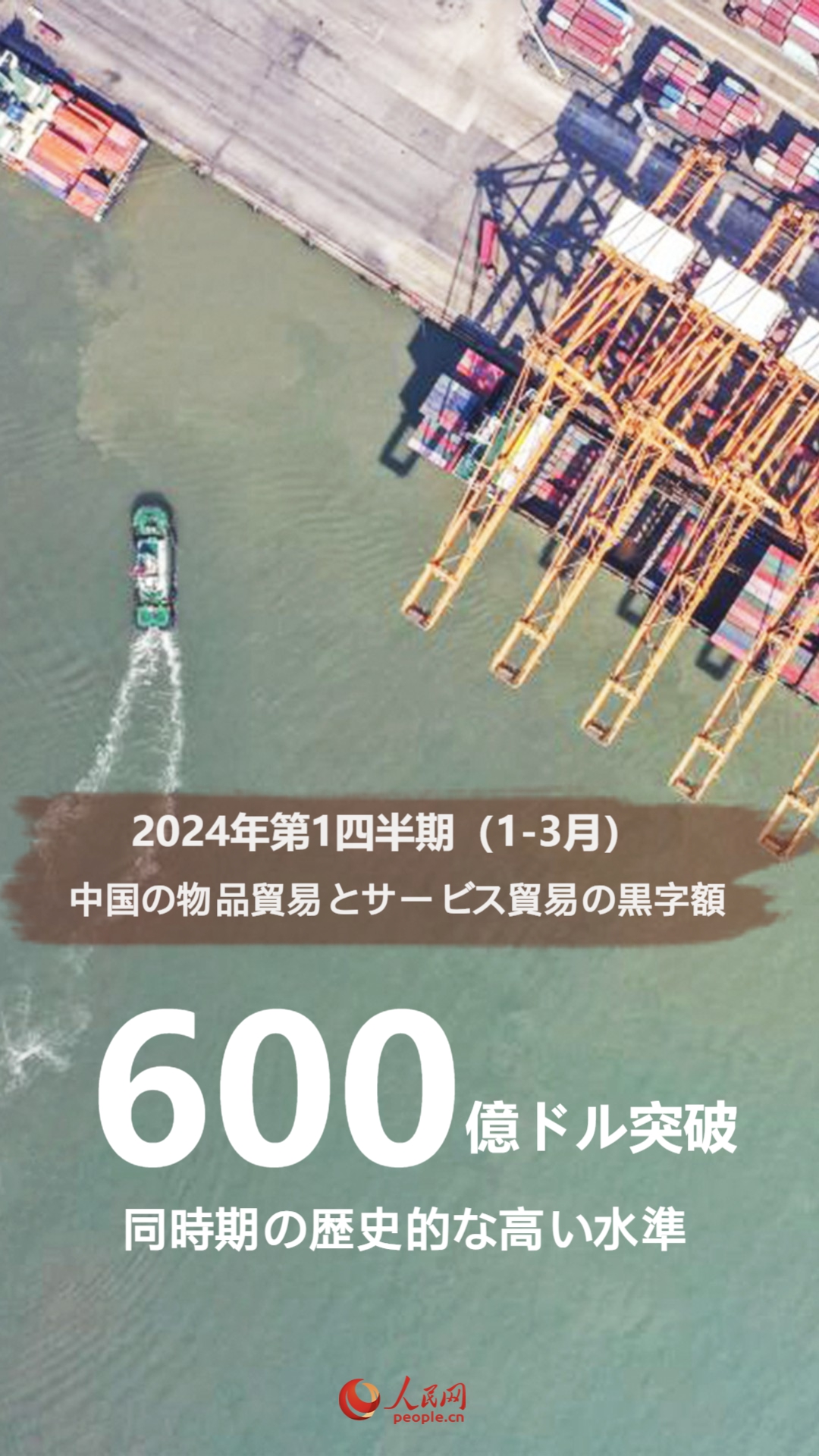 國(guó)家外貨管理局が18日に発表したデータによると、大まかな統(tǒng)計(jì)では、2024年第1四半期(1-3月)の中國(guó)の物品貿(mào)易とサービス貿(mào)易の黒字額は合計(jì)で600億ドル(1ドルは約154.6円)を超え、同時(shí)期としては歴史的に高い水準(zhǔn)だったという。