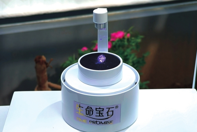 洛陽(yáng)生命寶石科技有限公司の責(zé)任者である王靜氏は、「この『ボタンダイヤ』は3カラットで、30萬(wàn)元(1元は約21.4円)相當(dāng)の価値がある。當(dāng)社が生物炭素抽出技術(shù)を用いてボタンから炭素を抽出し、高溫?高圧で合成したものだ」と述べた。