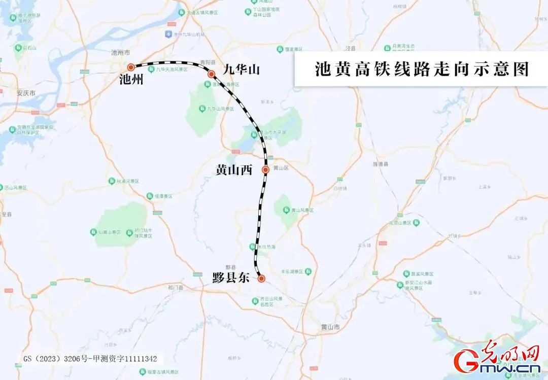 同高速鉄道は安徽省南部の山間地を走り、池州駅を起點(diǎn)に、同省池州市の貴池區(qū)と青陽県、黃山市の黃山區(qū)と黔県を経由する。路線の総延長は125km、設(shè)計(jì)速度は350km/h。池州、九華山、黃山西、黔県東の4駅が設(shè)置され、このうち九華山駅と黃山西駅は新たに建設(shè)されたもの、池州駅は既存の駅を拡張したもの、黔県東駅は既存の駅を利用したものだ。