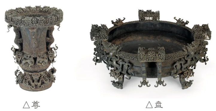 「盤」の裏には、戦國(guó)曾の君主「曾侯乙」が最後まで使っていたことを意味する「曾侯乙作持用終」という銘文が刻まれている。研究により、この銘文は、曾侯乙がこの「尊盤」を最初に使った人ではなく、曾侯が3代にわたって使ったことを示していることが分かっている。「尊盤」は、曾侯乙のお?dú)荬巳毪辘我黄筏?、先代が使っていたものを受け継ぎ、自分の名前を刻み直して、死後も副葬品として埋葬されたとみられている。
