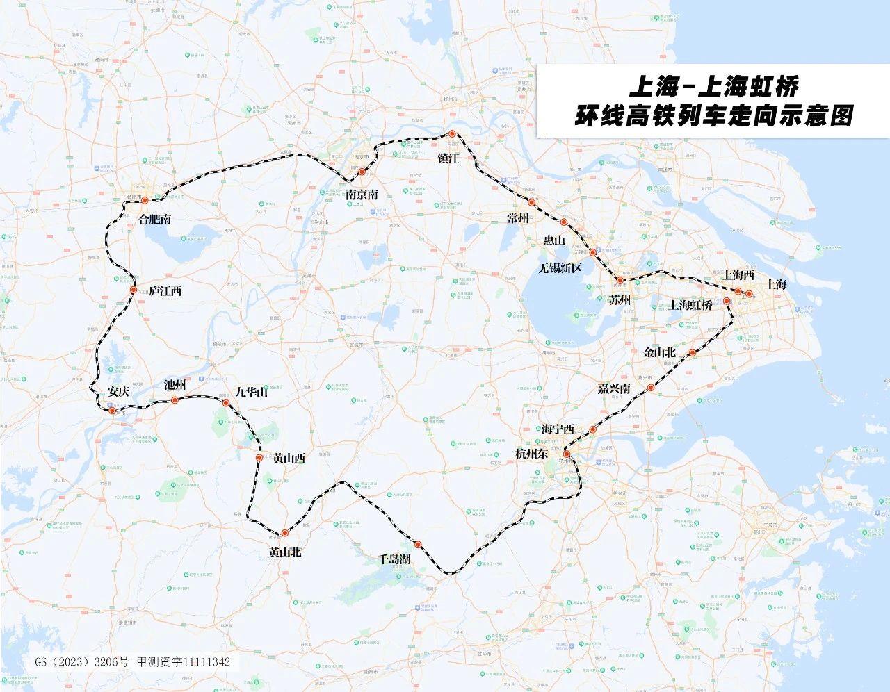 この環(huán)狀高速列車は、滬寧都市間鉄道(上海市ー江蘇省南京市)、寧蓉線(南京市ー四川省成都市)、京港高速鉄道(北京市ー香港特別行政區(qū))、寧安高速鉄道(南京市ー安徽省安慶市)、池黃高速鉄道(安徽省池州市ー黃山市)、杭昌高速鉄道(浙江省杭州市ー安徽省黃山市ー江西省南昌市)、滬昆高速鉄道(上海市ー雲(yún)南省昆明市)と連結(jié)し、上海、南京、合肥、杭州の4都市を繋いでいる。