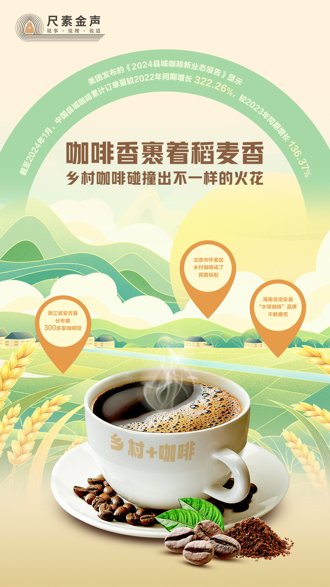 ここ數(shù)年で、「コーヒー+」が農(nóng)村観光の新たな業(yè)態(tài)になった。ECプラットフォーム「美団」の発表した「2024年県城(県の行政中心地)コーヒー新業(yè)態(tài)報告」によると、2024年1月末現(xiàn)在、中國の県城におけるコーヒー発注量が22年同期比では322.26%増加し、前年同期比では136.37%増加したという。