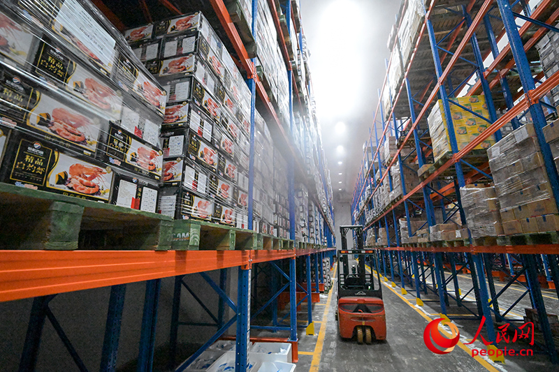 広西壯(チワン)族自治區(qū)の北部灣國際生鮮コールドチェーンパークにある氷點下18度の冷凍倉庫のラックには、パンガシウスやエビ、タチウオ、イカといった各種生鮮食品が整然と並べられていた。そして、フォークリフトがその中を行き交い、商品を運んで、トラックに積み込んでいた。これらの生鮮食品は、早ければ數時間で、遅くても數日で、中國各地の人々の食卓に並ぶ。