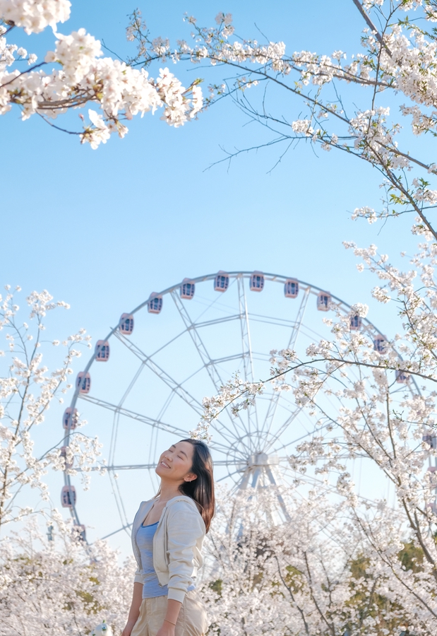 晴天の青空と満開の桜、照らされたような可愛らしい観覧車、このフレームに映る者は誰しもがおとぎ話のシンデレラ?