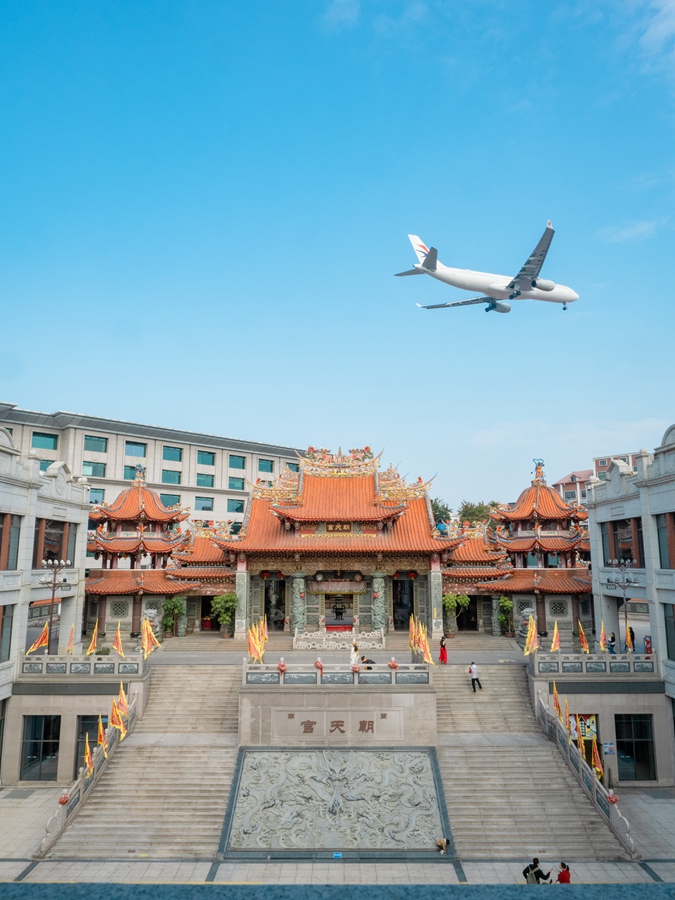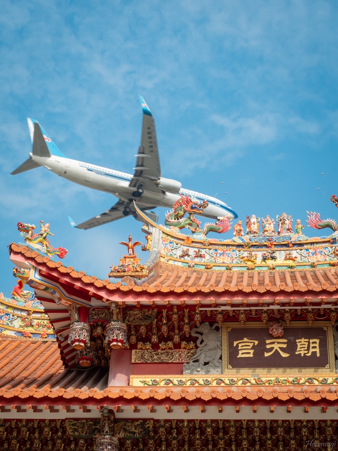 廈門(mén)市內(nèi)の寺院にて撮った寫(xiě)真。次々と寺院の上を飛んでゆく飛行機(jī)を眺めているうちに、あっという間に過(guò)ぎていく日々の時(shí)の流れの速さが感じられた。